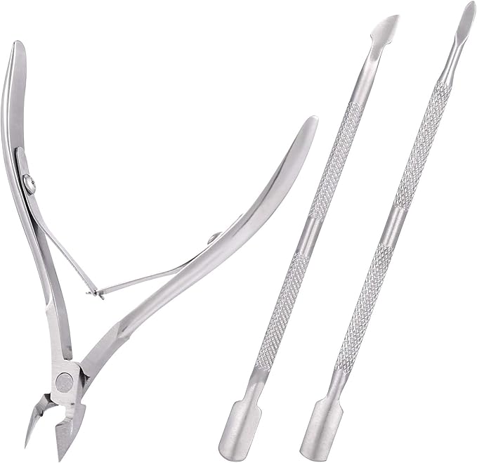 Cette trousse d’entretien des cuticules regroupe trois outils indispensables pour préparer les ongles avant une pose de vernis, de gel ou de capsules américaines. Elle permet de repousser, couper et nettoyer les cuticules avec précision, tout en respectant la forme naturelle de l’ongle.